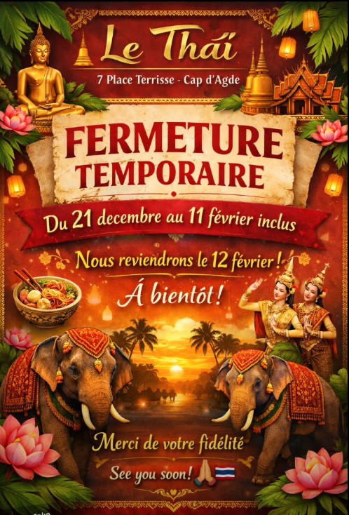 Votre restaurant est en congés du 1er Janvier au 11 Février 2025.